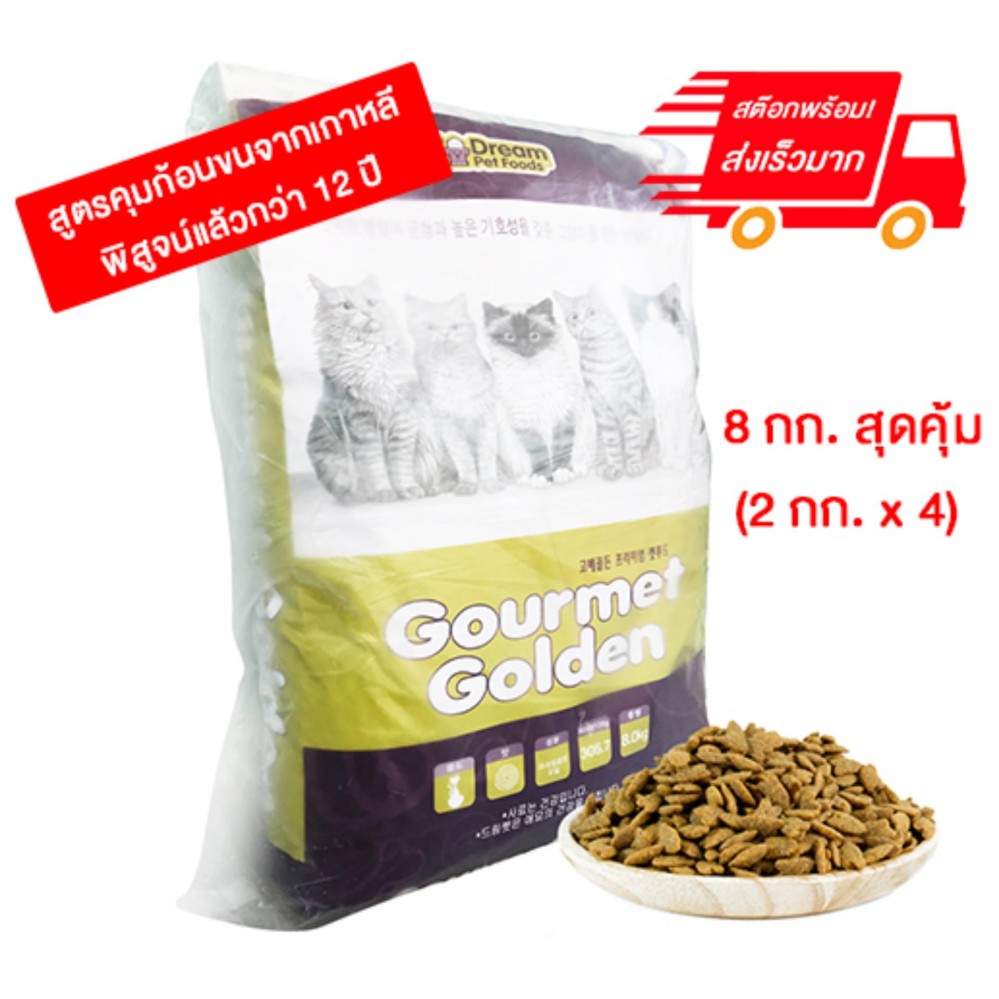 GOURMET GOLDEN กรูเม่ โกลด์เดิ้น อาหารแมวเม็ดสูตรเกาหลี 8.0kg (2.0kg x 4ถุง) สูตรควบคุมก้อนขน- การันตีด้วยยอดขายอันดับ1 จากเกาหลี ช่วยลดปัญหาอาการซึมไม่อยากอาหารเพราะก้อนขนทำให้ขับถ่ายไม่สะดวก เหมาะอย่างยิ่งสำหรับแมวขนยาว และแมวที่เลียขนเป็นประจำ